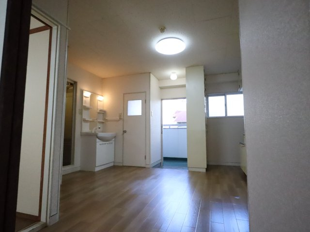 平和通り沿いにある南向きのお部屋です。エレベーターがあります。室内にはエアコン、リモコン式の照明器具、独立した洗面台、TVモニターホンなどの設備が