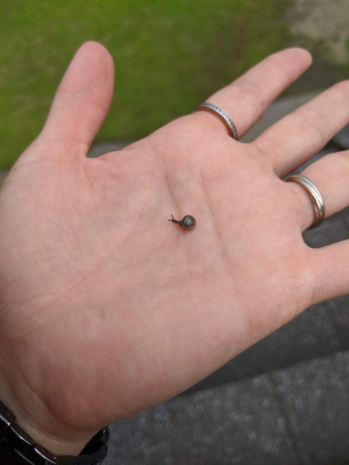 初めてこんなちっこいカタツムリを見つけました♪