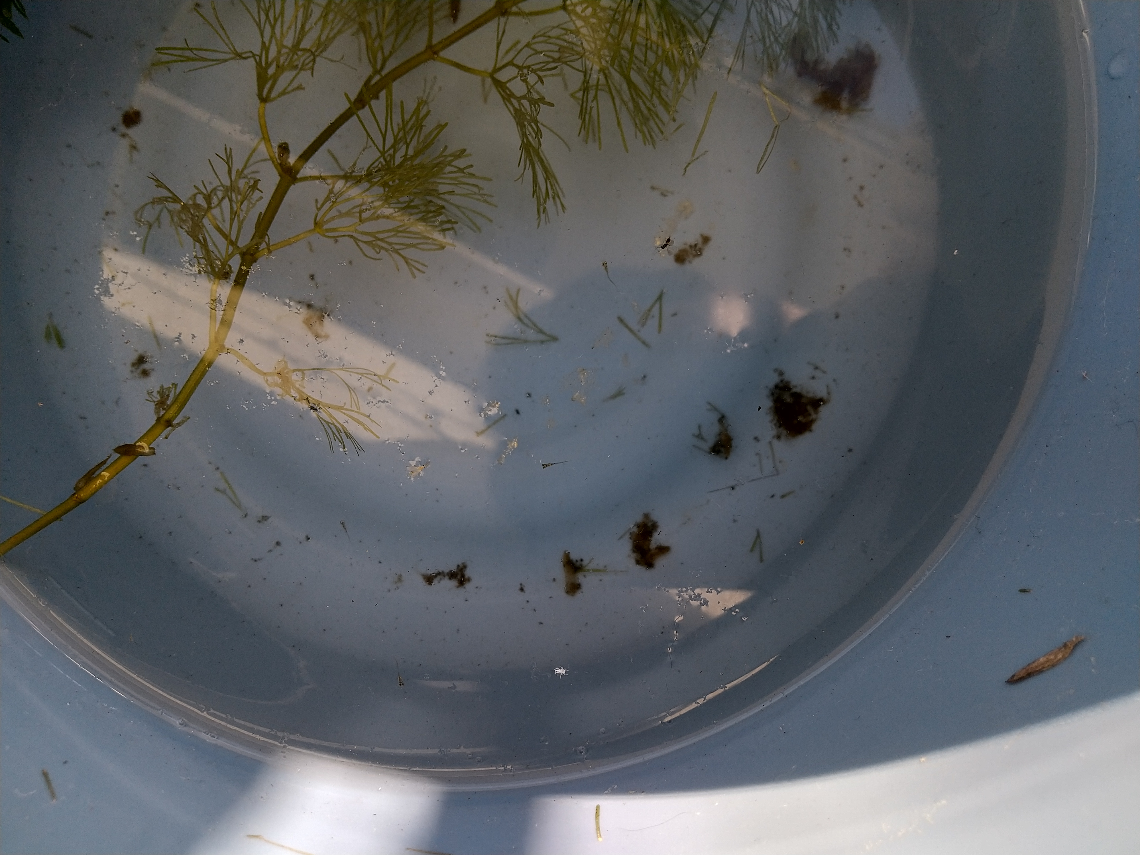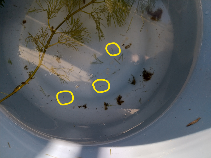 水草についていた卵を何個かバケツに移していました。