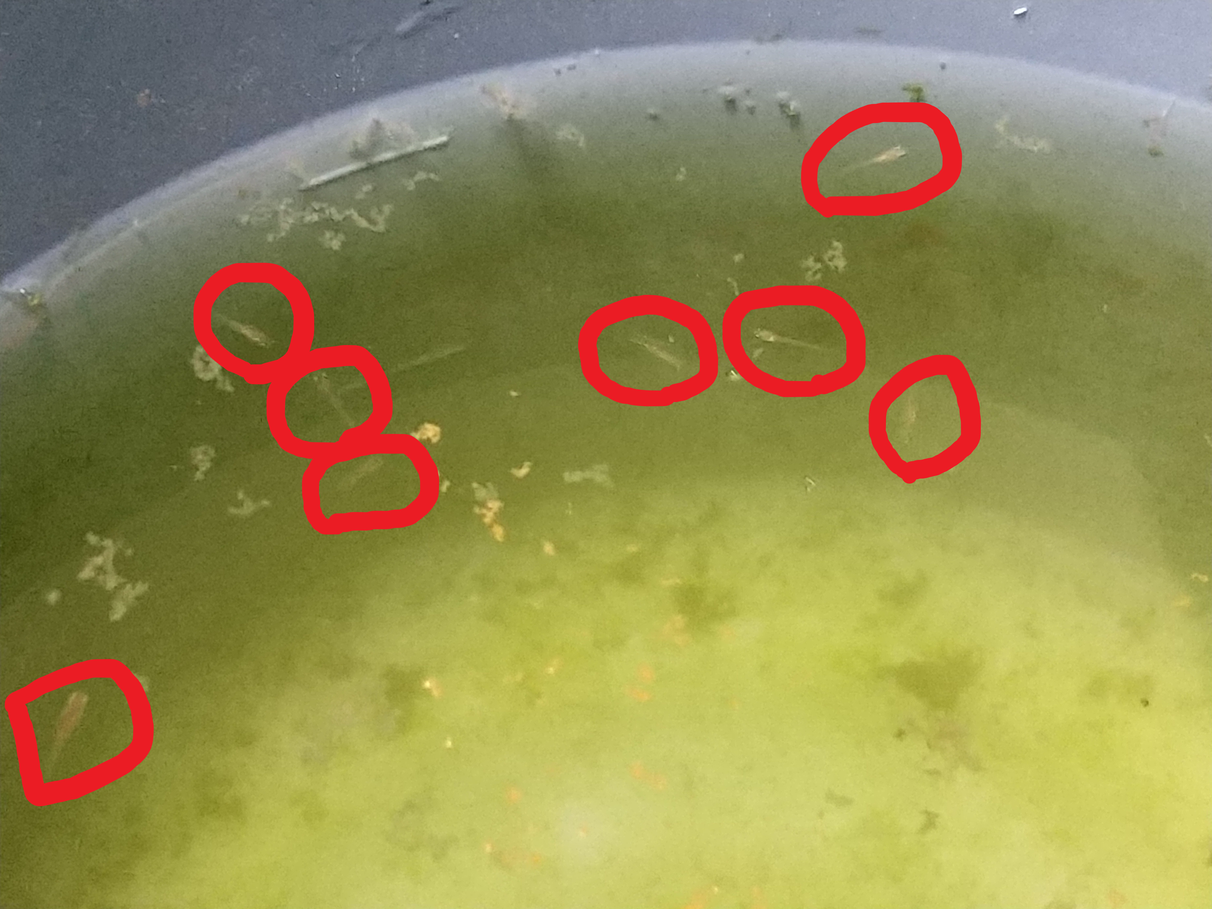 当初、生まれたてのめだかさんは目視で3匹だと思っていたのですが、