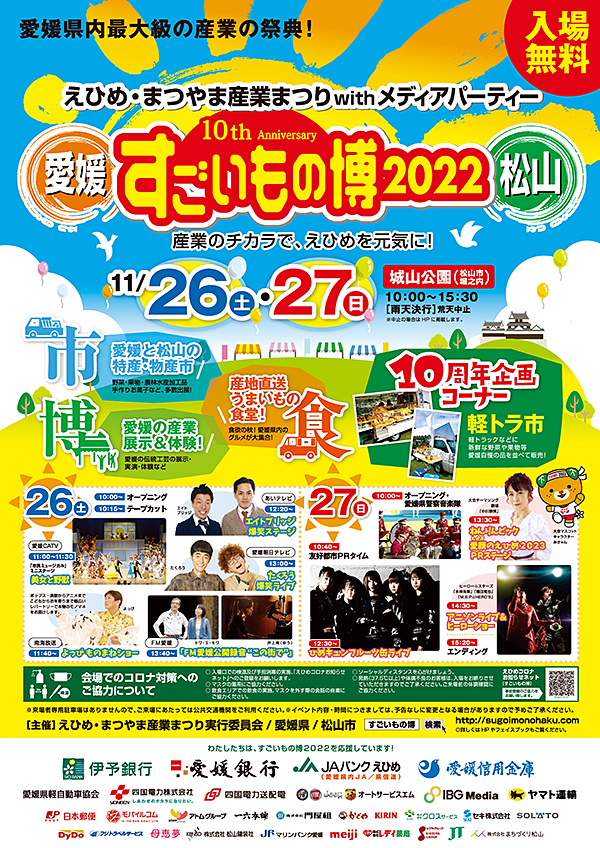 「市」のブースでは、愛媛県内の各20市町から自慢の農林水産物や“ご当地メニュー”が出展。