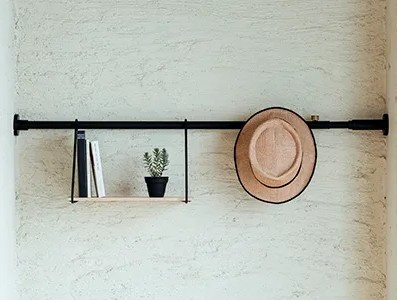 最後は、お部屋の雰囲気作りに役に立つ、ちょっとお洒落な突っ張り棒のご紹介。こちらは収納というより飾り棚っぽく使うのが良いかもしれません。