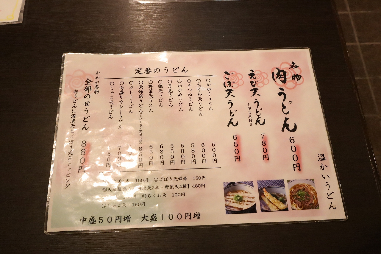 いつもあんまり考えずに、「肉うどん」「キツネうどん」「鍋焼きうどん」あたりから気分で選ぶものだからマジマジとメニューを見る機会があんまりないものでね。