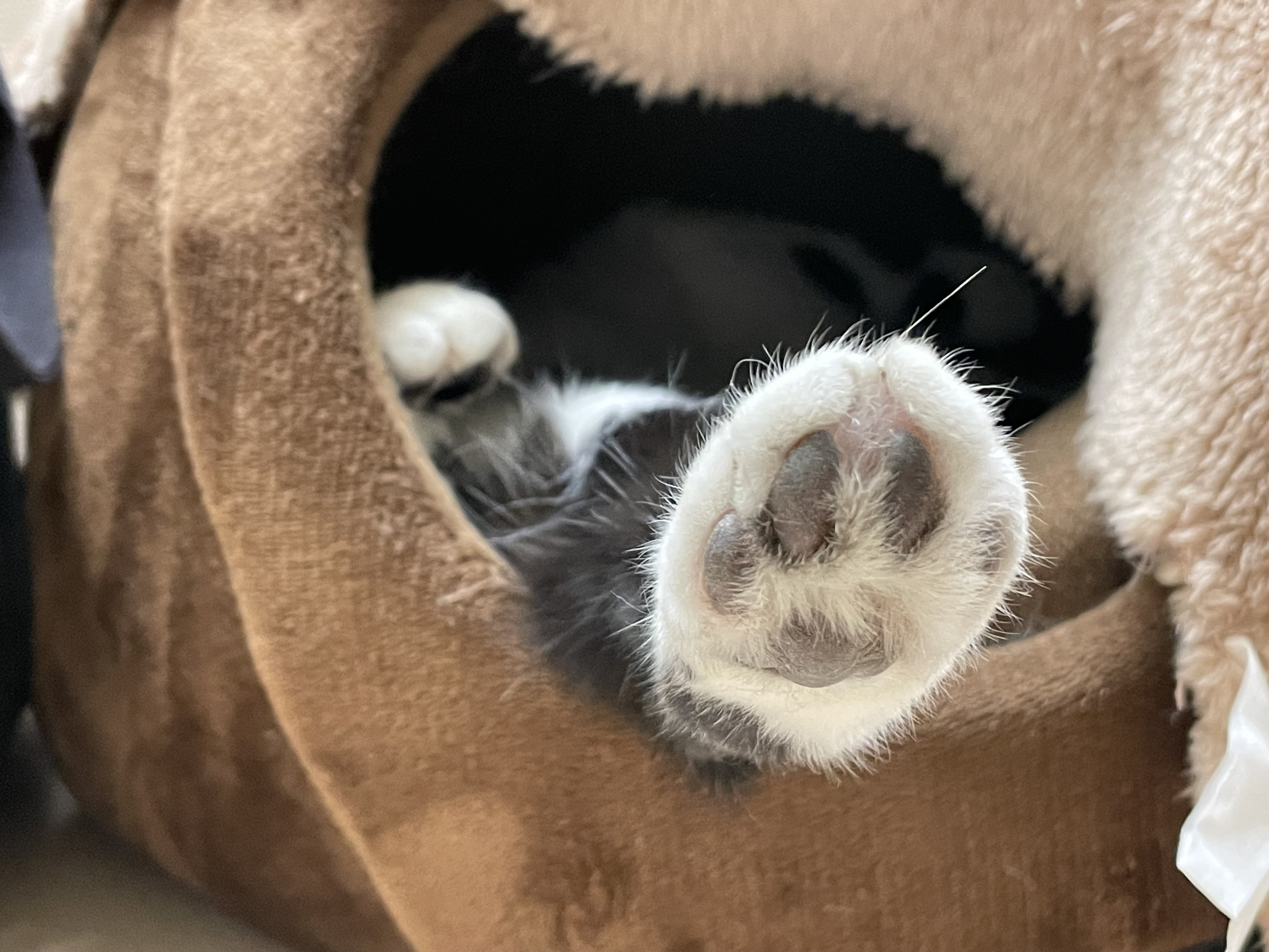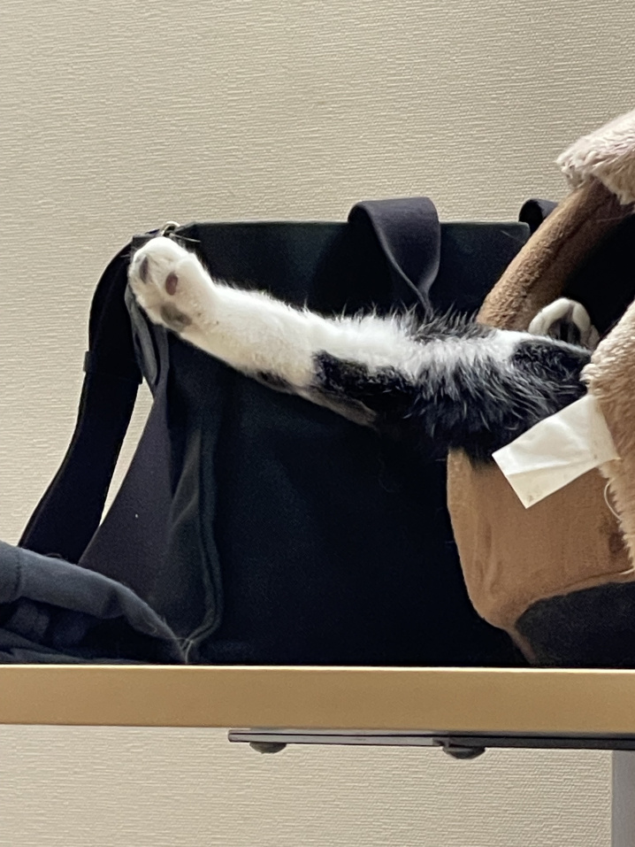 猫ハウスから伸びてきたのは――手?と思いきや、実は後ろ足!